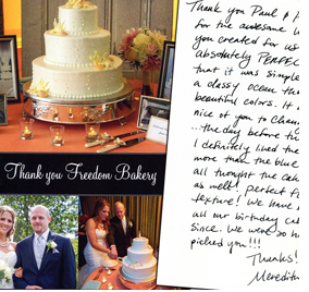 From cakes to cupcakes, desserts & favors, we’re here to make your special day as sweet as possible! We are a full retail bakery so our reliability and professionalism is unmatched. As a family business, we also understand the importance of details on special occasions, especially on wedding days. So we have a dedicated Wedding Team to assist all our couples with unique styles and budgets. Relax, enjoy your wedding planning, and really - with Freedom Bakery,It’s a Piece of Cake!