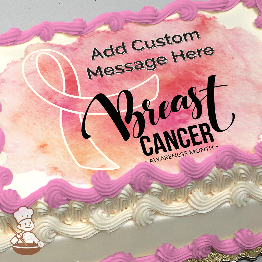 Breast Cancer Awareness Month Watercolor Ribbon Photo Cake