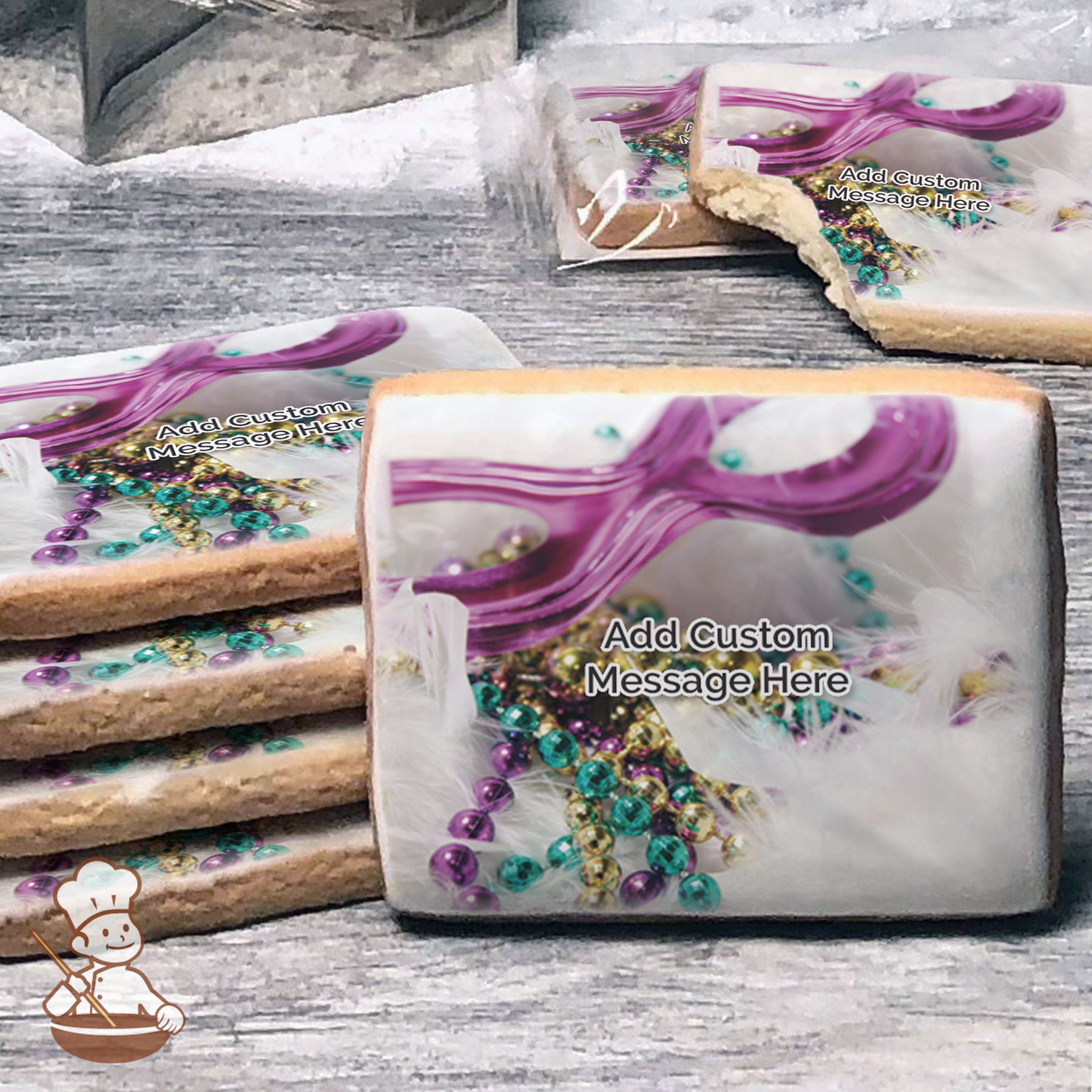 All Welcome to the Mardi Gras Carnival Custom Message Cookies (Rectangle)