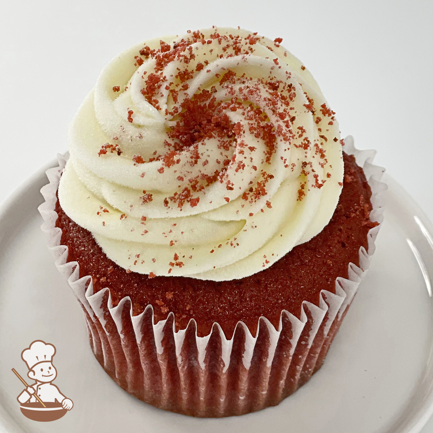 Rich and velvety! Delicious red velvet cake with white chocolate cream cheese frosting. Sprinkled with cake crumbs.